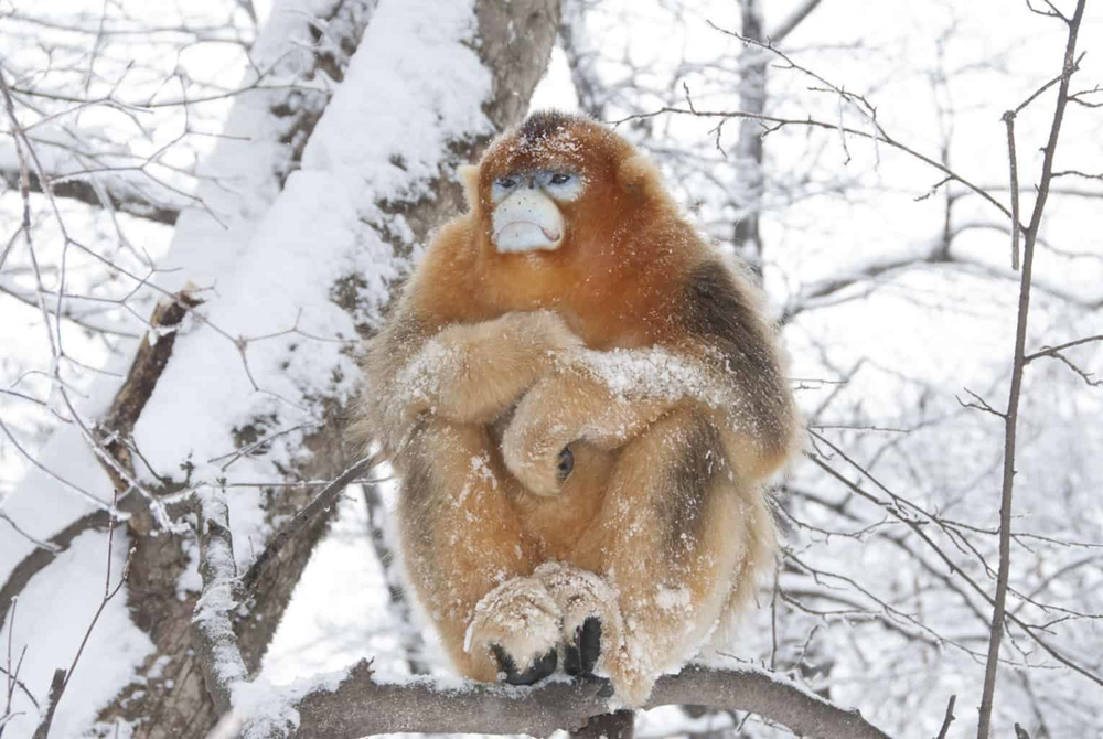 Вселенская тоска во взоре и опущенные книзу уголки рта. Замерзшие, будто бы от холода, синие мордашки. Золотистая курносая обезьяна выглядит как бедный родственник. А как по другому, если ты живешь в горных лесах Китая на высоте от 1500 до 3500 тысяч метров при среднегодовой температуре в 7 градусов?