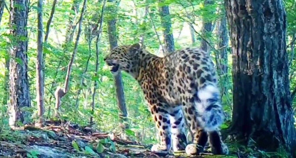 В национальном парке "Земля леопарда" фотоловушка запечатлела дальневосточного леопарда. Хищник встал на задние лапы и изучал метки на дереве, оставленные его сородичами. За это леопард получил от сотрудников парка прозвище "леопардовый сурикат".