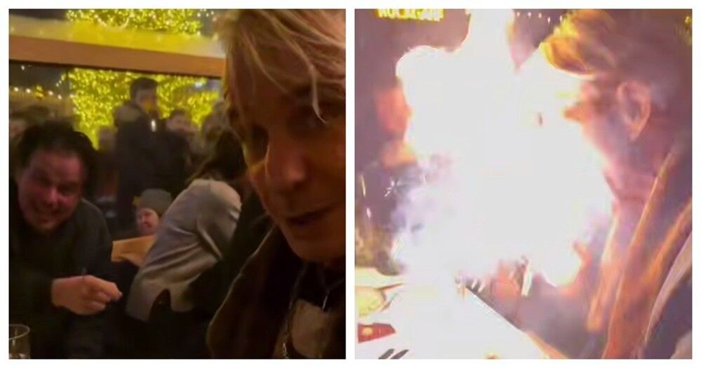 Большинство участников группы Rammstein: используют пиротехнику на концерте и в жизни, соблюдая технику безопасности.Тилль Линдеманн в какой-то кафешке: