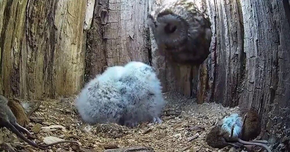 Неравнодушные люди помогли неясыти стать мамой. Они дождались, когда птица улетит на охоту, и аккуратно заменили её пустые яйца на птенцов, оставшихся без родителей. Вернувшись, неясыть не заподозрила подмены и приняла сирот как своих.