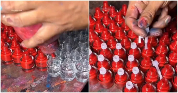 Кадры с небольшой фабрики в Индии, где в кустарных условиях производят один из самых популярных косметических продуктов - лак для ногтей.