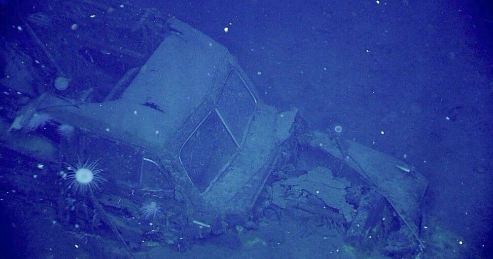 Среди обломков американского авианосца, затонувшего в Тихом океане более 80 лет назад, обнаружен загадочный автомобиль. Корабль USS Yorktown был уничтожен японцами во время битвы за Мидуэй 7 июня 1942 года.
