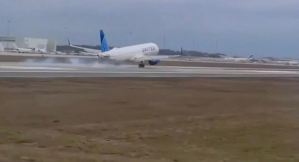 В США произошёл нештатный инцидент с пассажирским самолётом. Переднее колесо шасси отлетело у самолета United Airlines во время посадки.