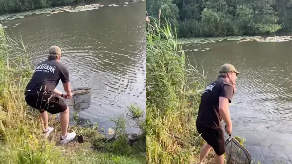 Обычная рыбалка едва не закончилась травмой, когда мужчина пытался достать пойманную рыбу сачком. Рыба так активно барахталась, что вырвала крючок изо рта - и тот с силой отлетел прямо в лицо рыбаку.