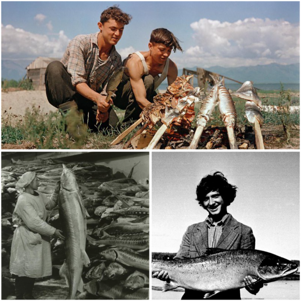 Промышленная добыча и отдых, рыболовные траулеры и мальчишки с удочками на берегу, рыбзаводы и привалы рыбаков на фотографиях с 1933 по 1988 год.