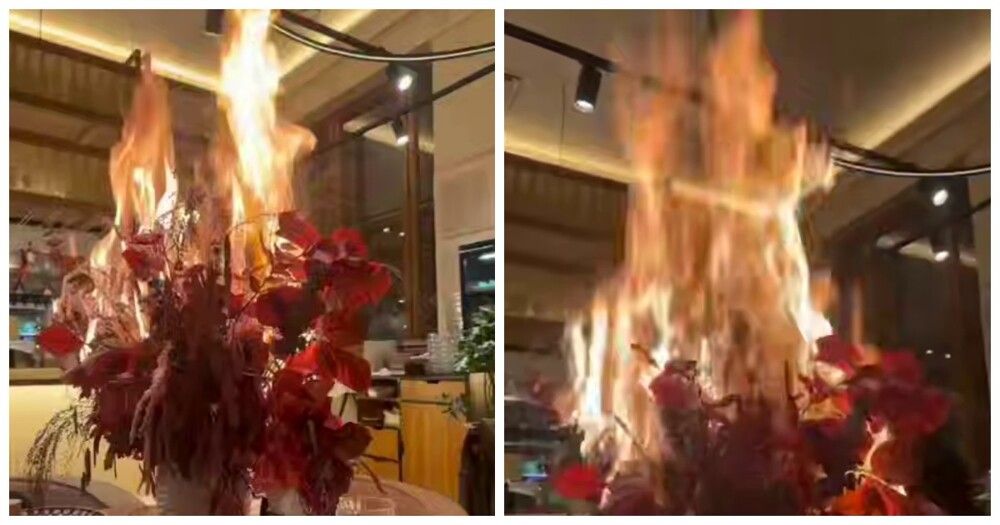Москвичи любят блюда погорячее. Посетители ресторана подумали, что загоревшийся букет это часть шоу.