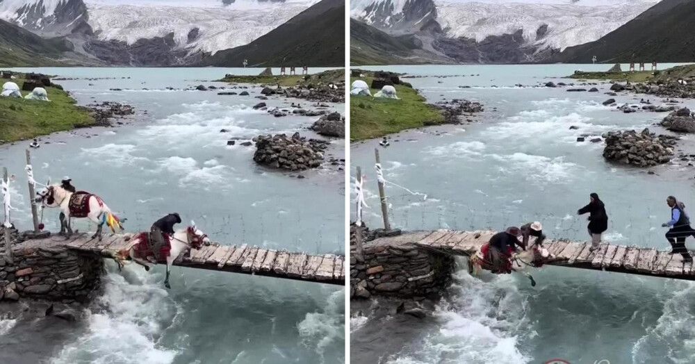 Несмотря на попытки прохожих помочь, животное рухнуло в воду вместе с всадником. К счастью, место оказалось неглубоким и никто серьезно не пострадал.